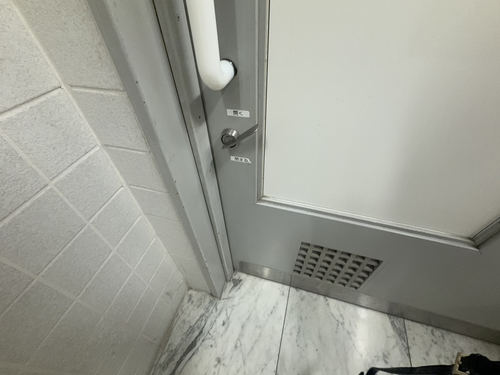 まず基本として教わったのは、多目的トイレのドアは真っ正面から撮ること。斜めからの写真では、入口の幅感や扉の開き方が分かりにくくなってしまいます。